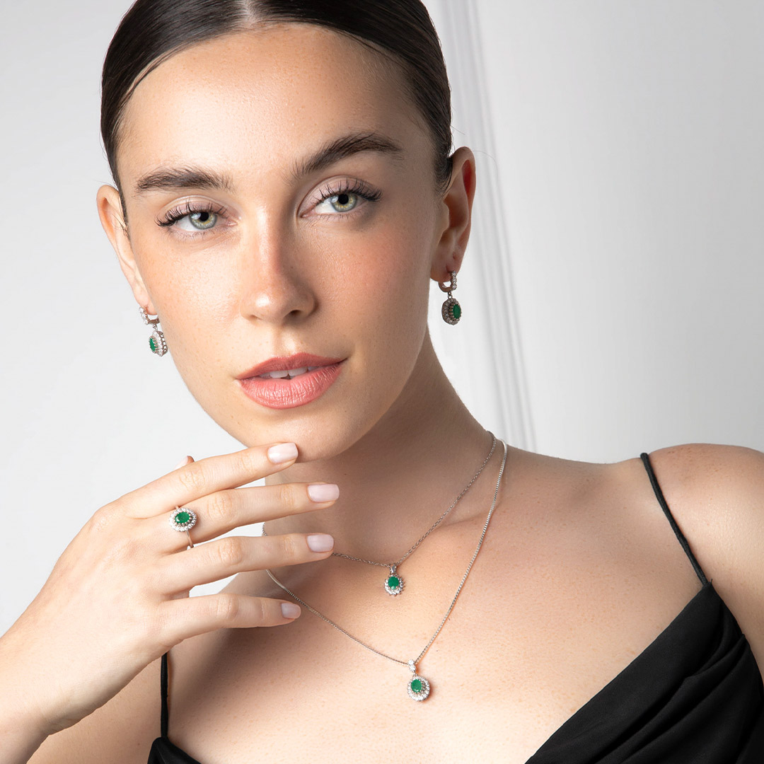 Dentro de la tendencia de joyas, las esmeraldas combinan a la perfección con la plata, creando piezas atemporales que son ideales tanto para eventos formales como para el día a día.