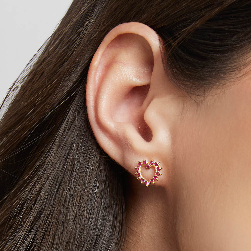 Aretes Rubí Corazón Oro 18K